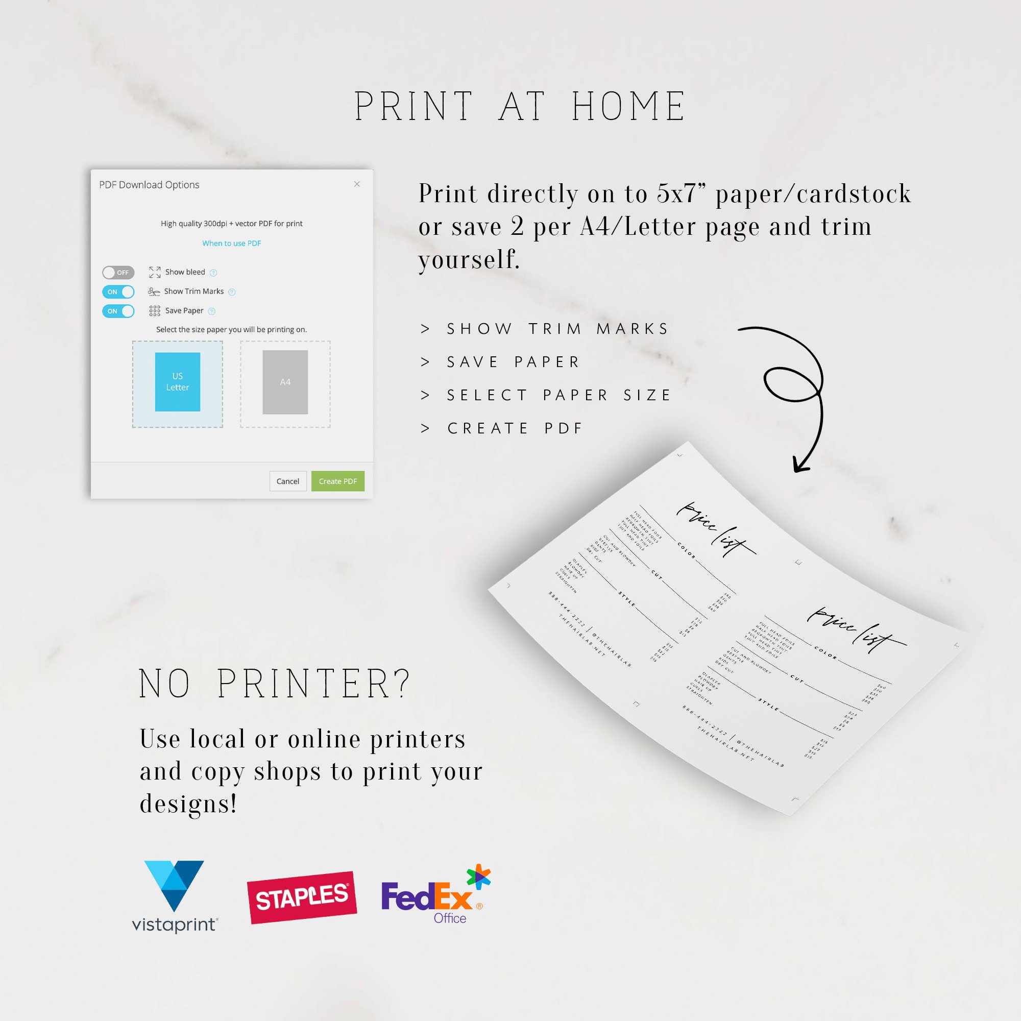 Printable Price List Template Salon Price List Price Guide Etsy
